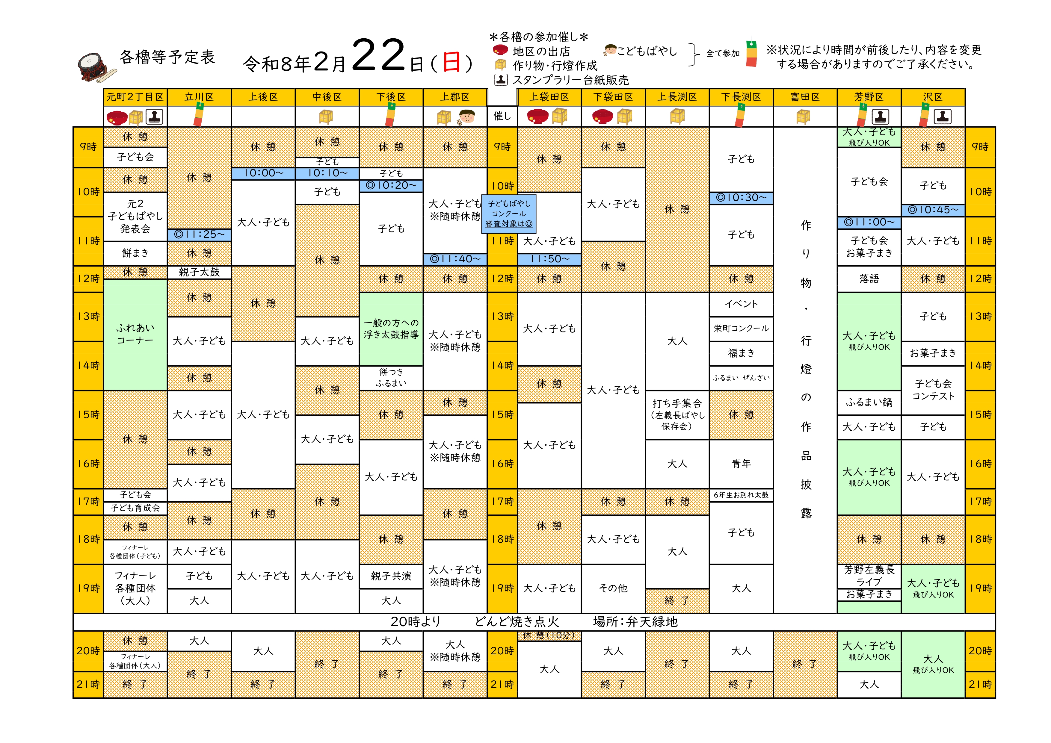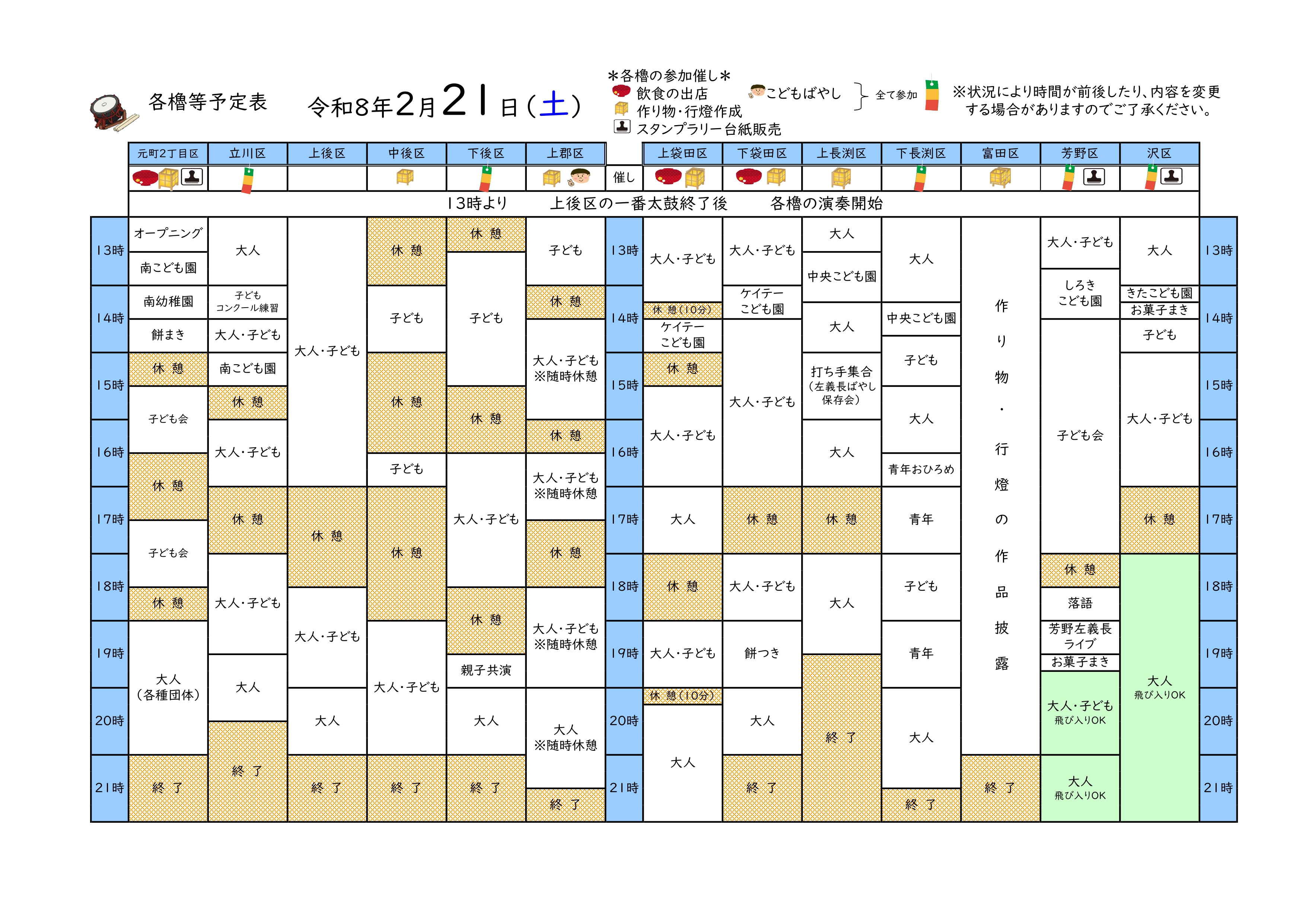 2/22 22年まつり情報に保存会まつり公演と各地区予定をのせました